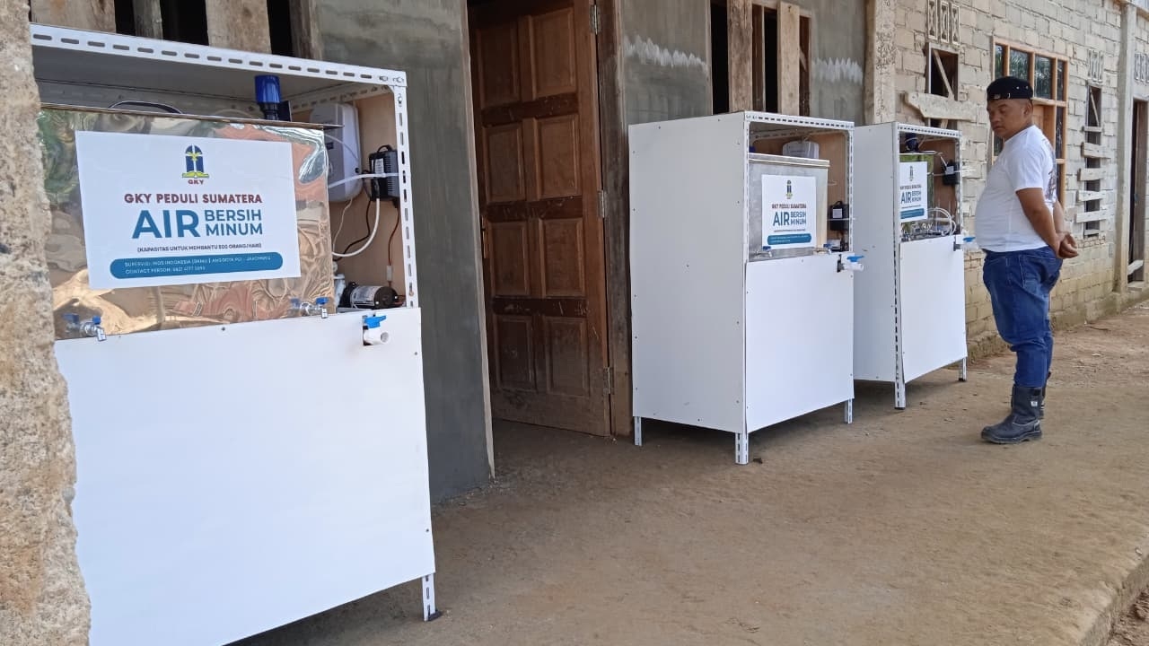 GKY Peduli Sumatera kembali menyalurkan bantuan kepada para korban bencana Sumatera, dengan memberikan bantuan 3 unit pengolahan air kotor menjadi air bersih dan air minum (bekerja-sama dengan MDS (Mennonite Diakonia Service atau Muria Damai Sentosa) di daerah bencana Tapanuli Tengah / Sibolga : 1. GPDI Lopian Lingkungan 1 (19 Jan 2026) 2. Lopian Badiri Lingkungan 5 (22 Jan 2026) 3. Paroki Pinangsori Badiri (26 Jan 2026) Kiranya apa yang telah diberikan dapat dimanfaatkan dengan baik dan nama Tuhan dipermuliakan.